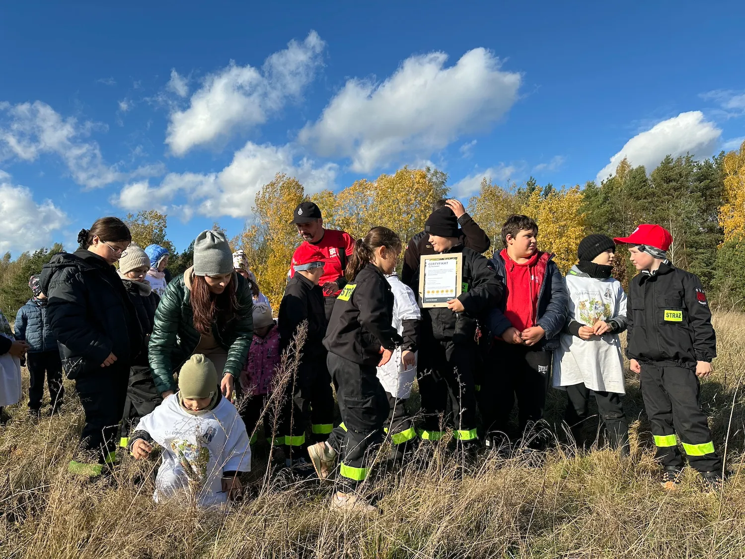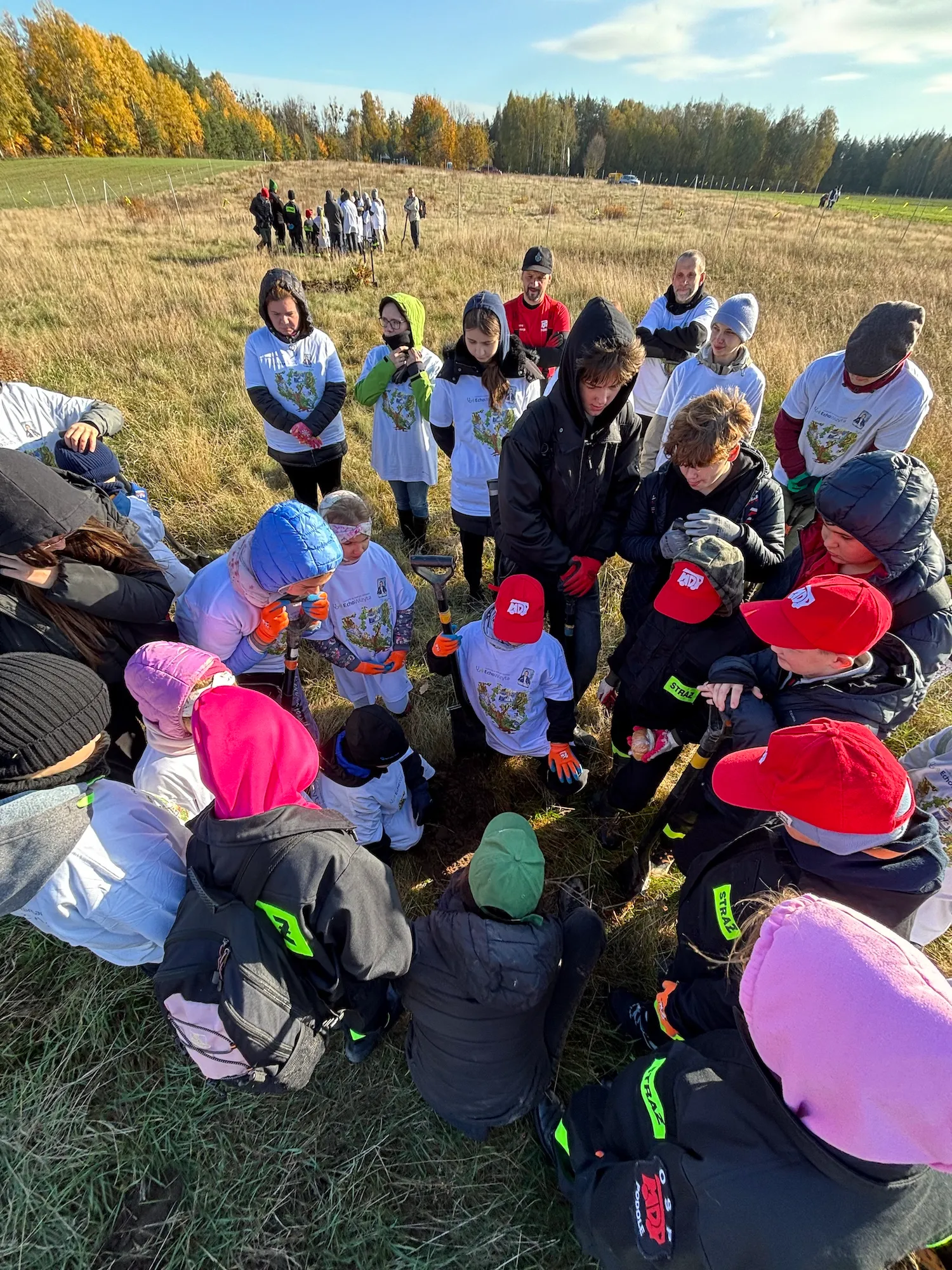 Wydarzenie to stało się lekcją przyrody, w której wzięła udział liczna grupa dzieci z OSP Podole, które z radością i ciekawością chłonęły wiedzę o ekosystemach i ochronie. Cały teren jest bezpieczny dla dzikich zwierząt, które mogą swobodnie migrować, a sadzonki rosną pod opieką w ogrodzonym gnieździe lub są chronione gorzkim, naturalnym cervacolem. Zapach żywicy mieszał się ze śmiechem najmłodszych, a widok przebiegających dzików przypomniał wszystkim, że oddajemy ten teren naturze.